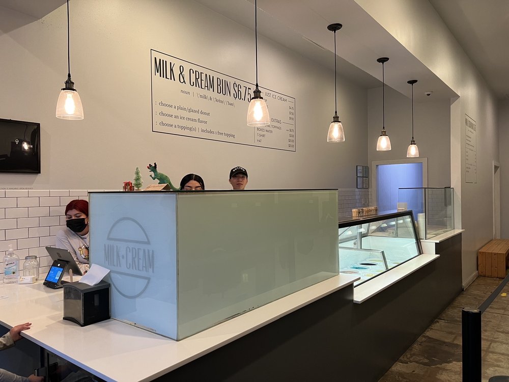 Introducing Milk & Cream, a dessert destination in Dallas, TX offering unique ice cream and frozen yogurt creations. With a variety of flavors and toppings, customers can indulge in donut ice cream sandwiches or opt for scoops and cones. The warm glazed donut filled with lavender ice cream is a fan favorite, while options like ube and matcha green tea flavors add a fun twist to classic treats. The cozy decor and friendly service make for a delightful experience, perfect for late-night cravings or family outings. Milk & Cream stands out for its innovative menu and imaginative pairings, creating a memorable dining experience for all dessert enthusiasts.